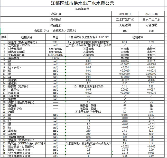 水質(zhì)公示