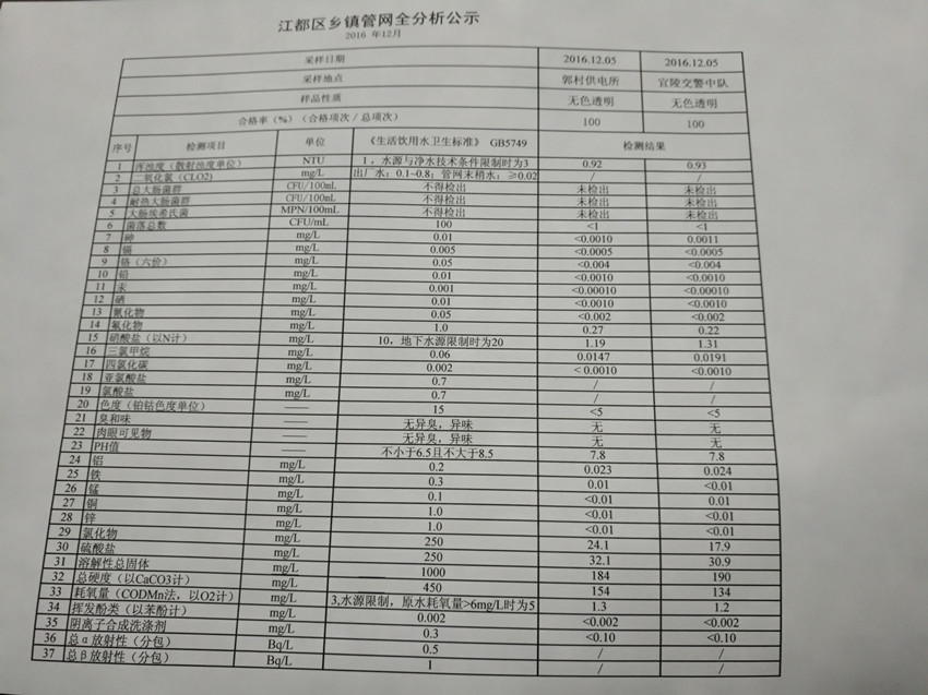 2016年12月江都區鄉鎮管網全分析公示