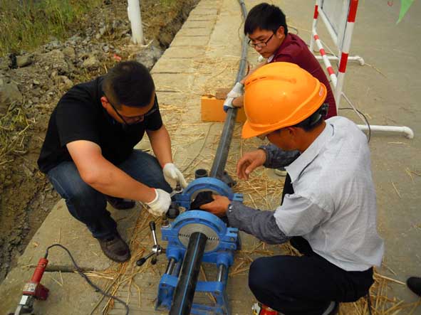 為保障區域供水有效運行,公司加大支管網和鄉鎮用戶水表出戶規范化改造力度,將“放心水”送到農戶家中。圖為工作人員在實施支管網改造。