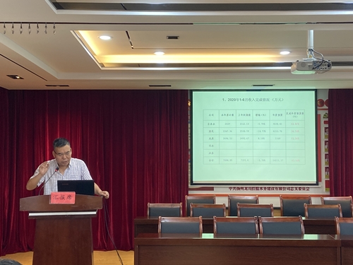 圖為生產(chǎn)經(jīng)營相關(guān)的重點部門、子公司負(fù)責(zé)人作上半年工作總結(jié)報告
