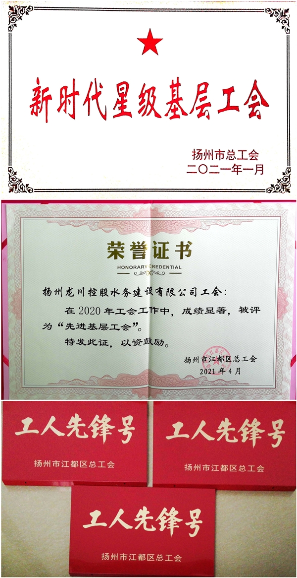 揚州龍川水務(wù)公司工會榮獲“新時代星級基層工會”和“先進基層工會”稱號、水務(wù)公司三個班組榮獲“工人先鋒號”稱號
