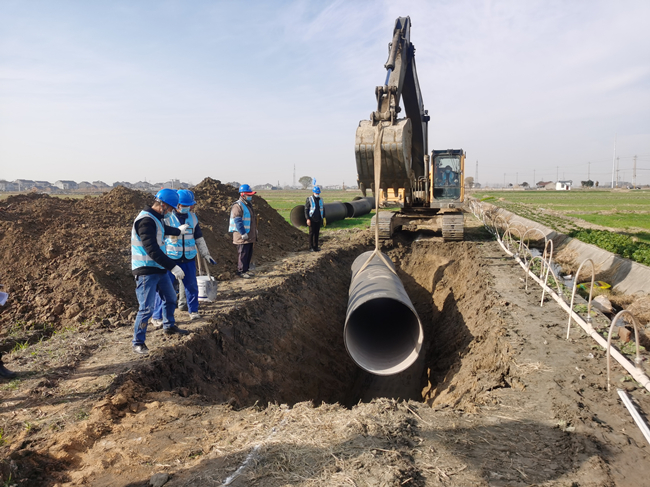 該工程項目契合《揚州市江都區(qū)給水工程專項規(guī)劃》(2018-2035),列入江都區(qū)城市建設和環(huán)境提升重點工程,工程起點位于宜大路與336省道交叉口處預留的DN1200管道接口,終點位于郭村增壓站,全長23.39公里,采用管徑DN1000球墨鑄鐵管,輸水規(guī)模達到8.5萬m³/d,項目總投資18228萬元,預計2023年3月竣工。本次先導段施工長度為750米。